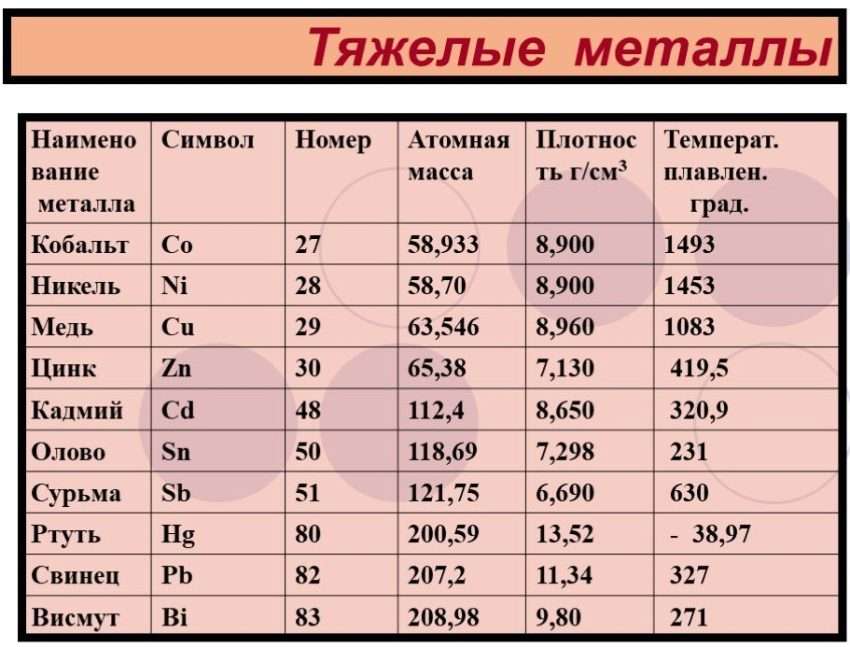 Практическое применение тяжелых металлов