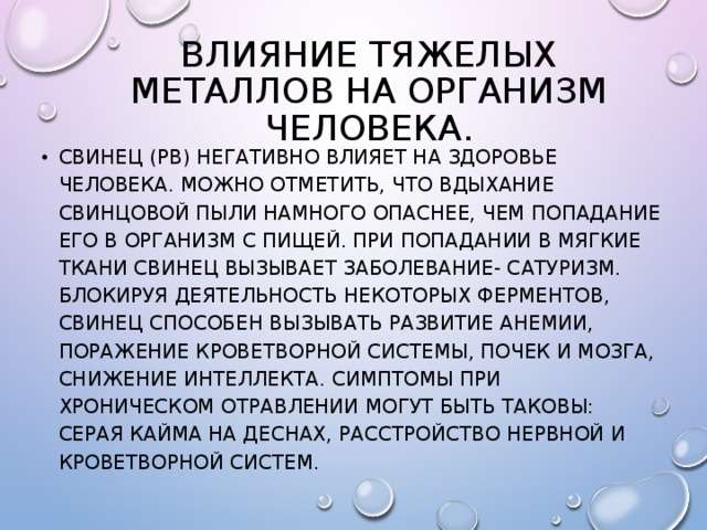 Длительное воздействие низких доз тяжелых металлов может приводить к развитию хронических заболеваний: